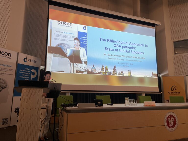 Dr Maria Pulido przedstawiła aktualny stan wiedzy dotyczący larynologicznego podejścia u pacjentów z obturacyjnym bezdechem podczas snu (ang. The rhinological approach in obstructive sleep apnea patients, state of the art and updates).